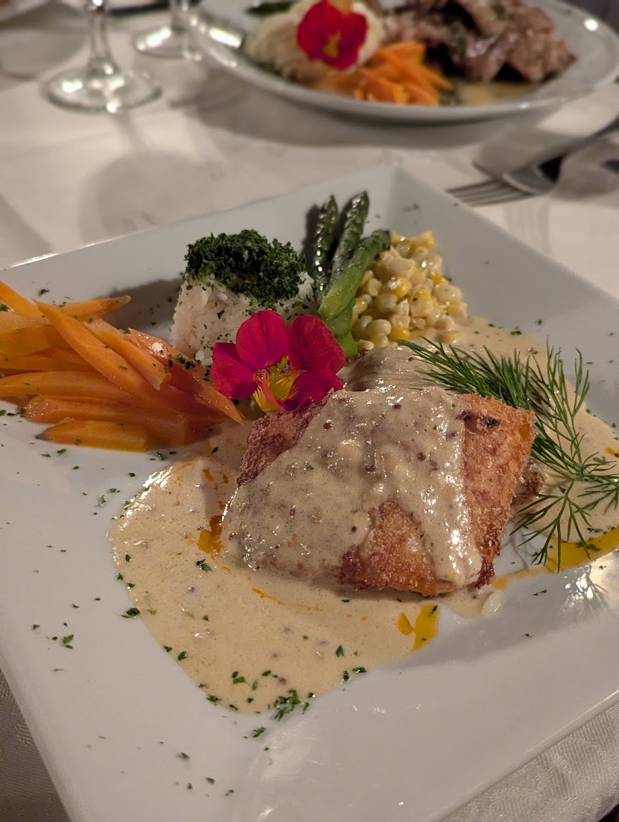 “ Great service in a beautiful dinning too overlooking a roaring stream. The food was delicious, prepared and presented properly. Could not ask for a better experience. ”